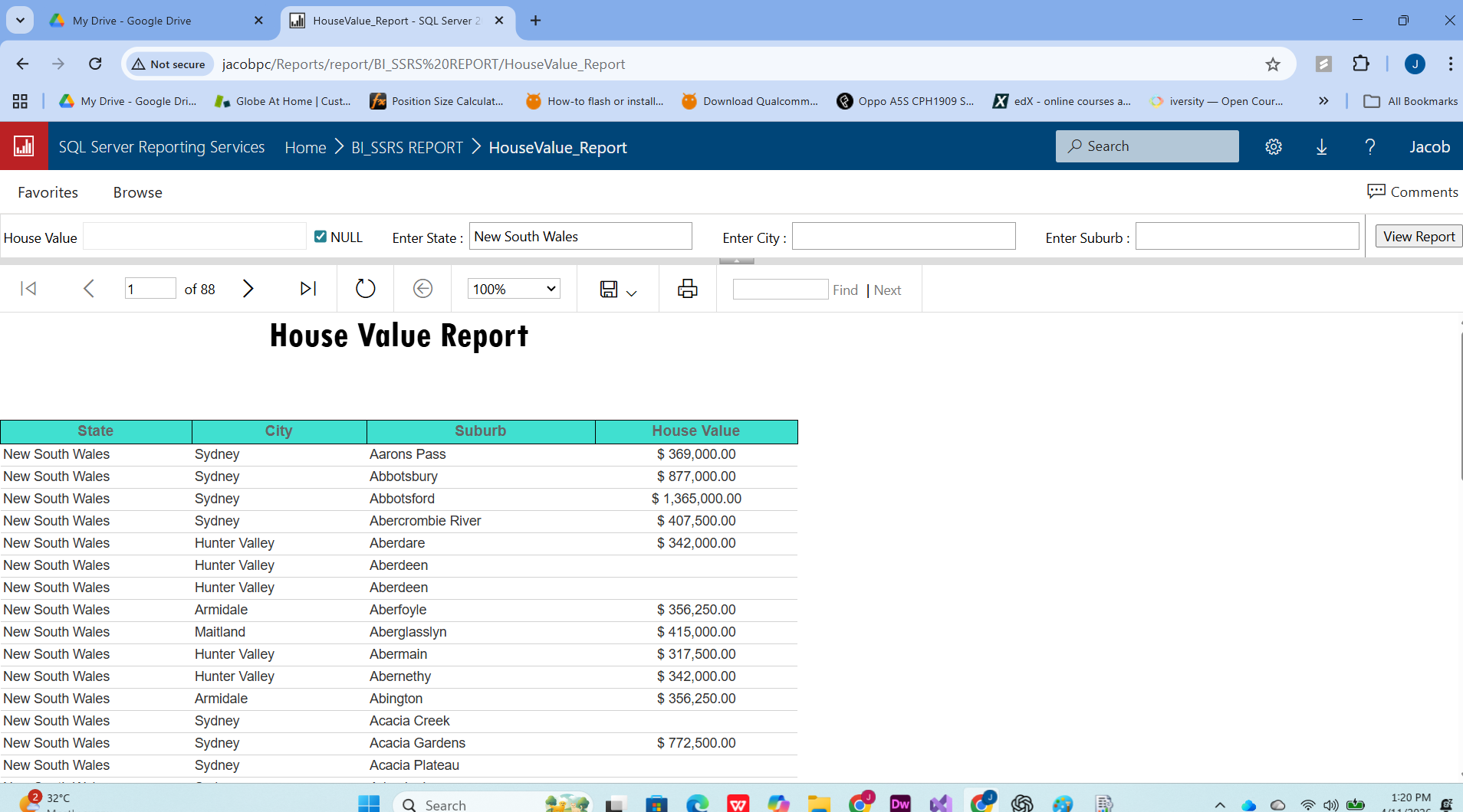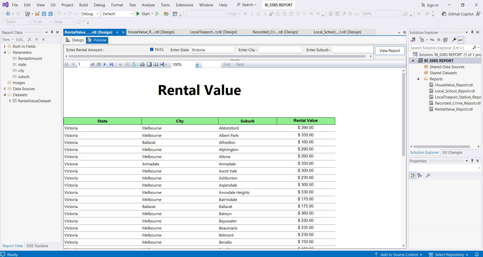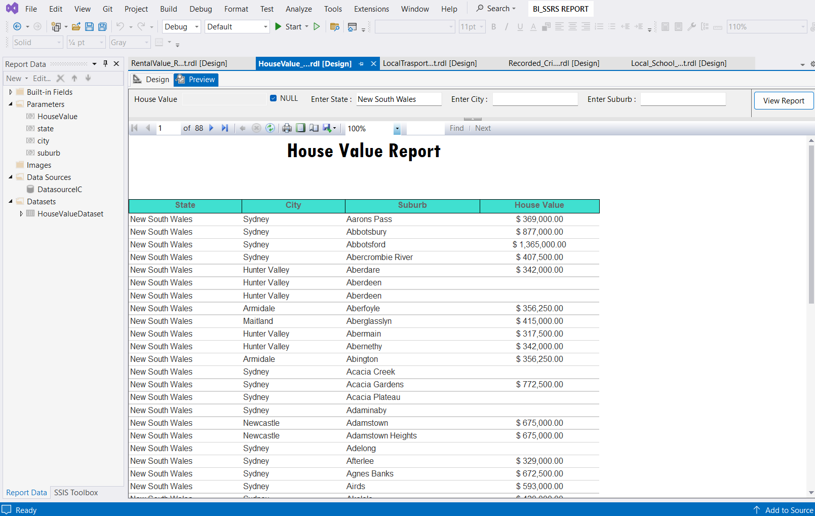 SQL Server Reporting Services (Australian Dataset)