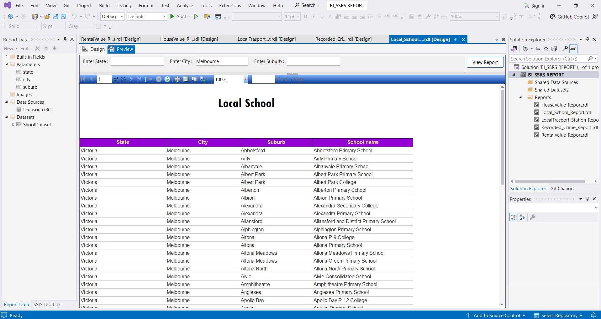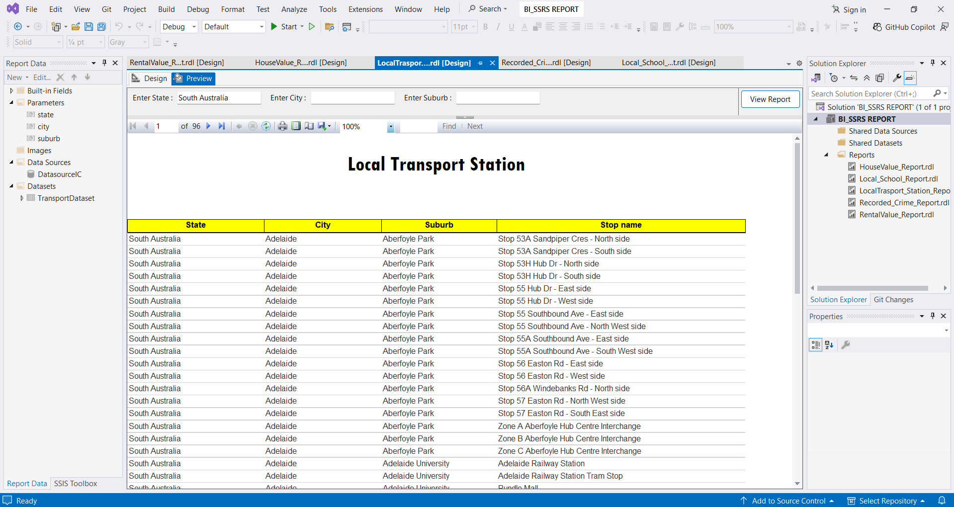 “In this task consolidated data from the Australian Dataset was used to create a paginated report using SQL Server Reporting Services (SSRS) Report”